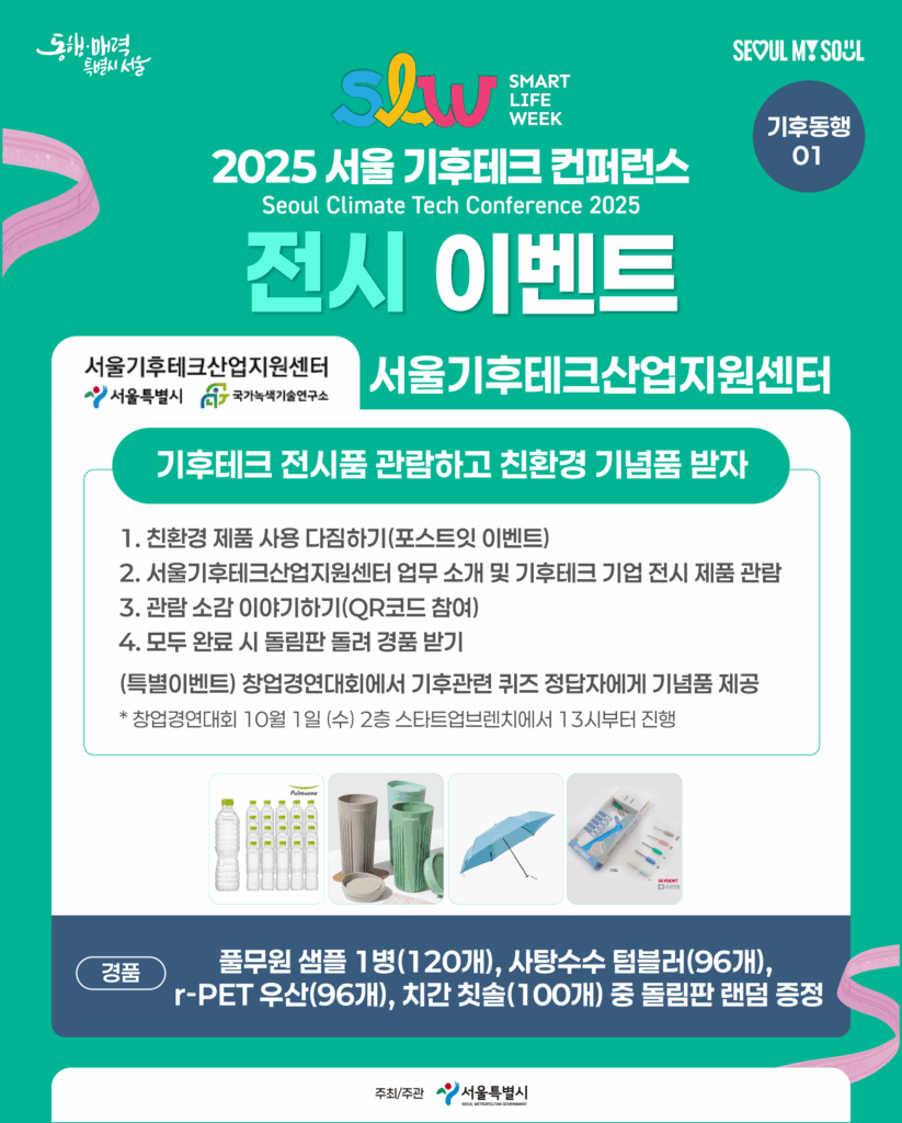 기후테크 전시에 대한 여러분의 소중한 의견을 들려주세요. 참여해 주신 분들께는 푸짐한 기념품이 준비되어 있습니다.